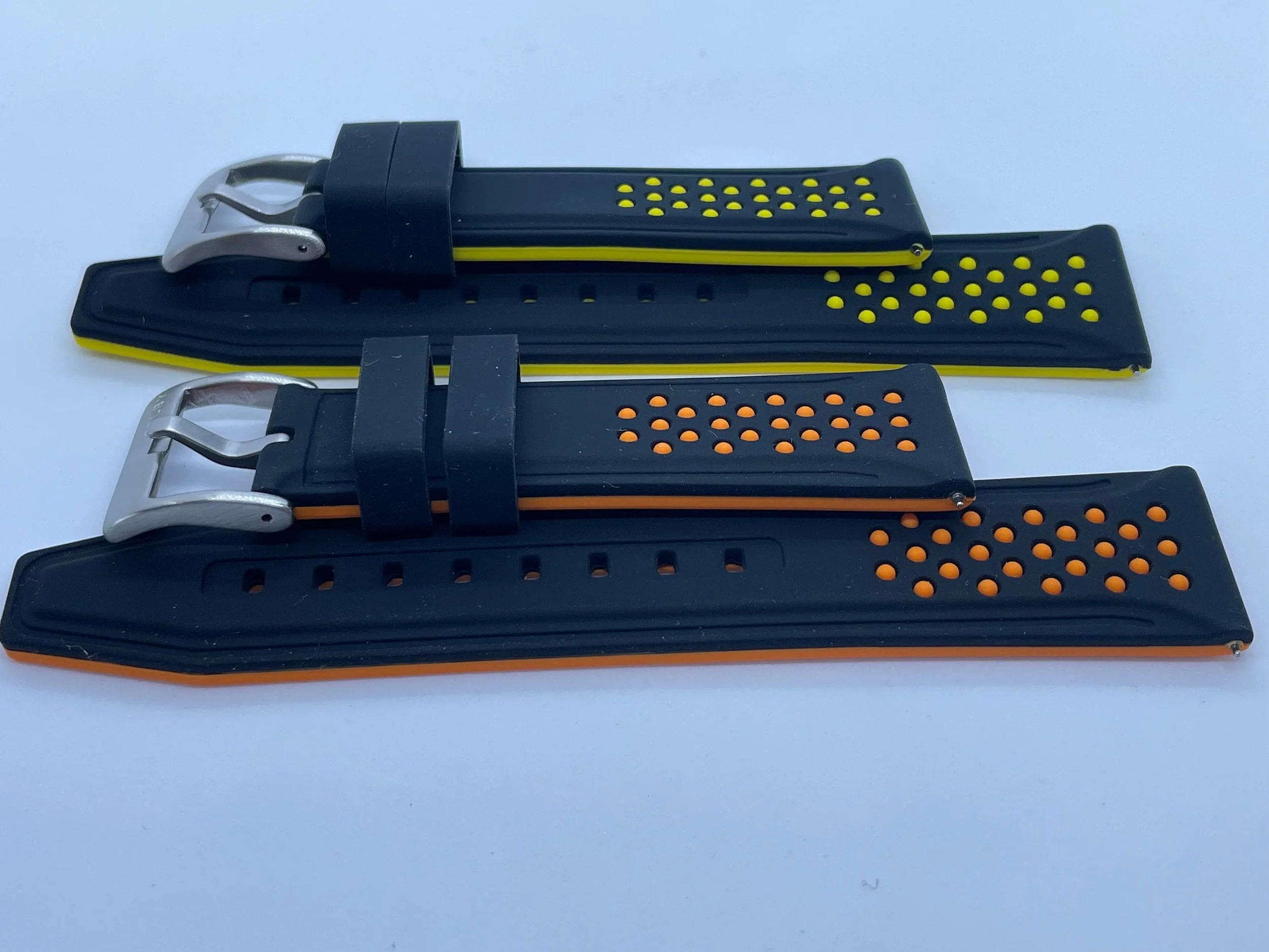 22mm, black and yellow solid silicone strap with yellow dots and steel buckle (Quick release spring bars)